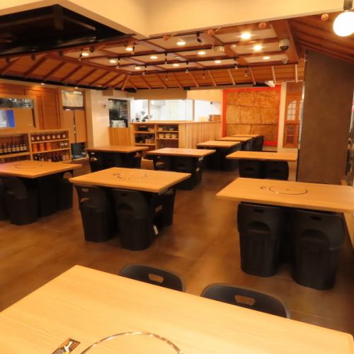 天井が高く広々としたオシャレな店内。皆さんと楽しく食べて飲んでワイワイできるほんのり和を感じる空間です。鮮度抜群な魚やお肉をジュージュー焼きながらお好みのドリンクも一緒にご賞味ください。用途にあわせて6種のコースをご用意しております♪貸切も可能ですのでお気軽にスタッフまでお声かけください★